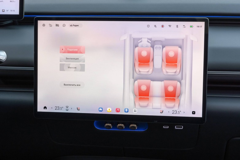 Дать окружающим понять, что ты держишь свой транспорт под контролем, можно и вне салона. Кроссовер предполагает удаленное управление и мониторинг с помощью мобильного приложения. Смартфон позволит настроить климатический контроль, заблокировать и разблокировать двери, провести дистанционную диагностику (на предмет заряда тяговой батареи, состояния аккумулятора, давления в шинах), получить уведомление от интеллектуального помощника по охране и отследить местонахождение автомобиля. Важно и то, что заведомо устранен риск остаться без связи, ведь в салоне доступны два модуля беспроводной зарядки с функцией охлаждения мощностью 50 Вт.