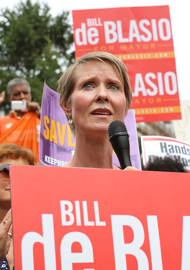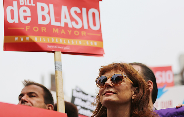 Билл де Блазио нашел поддержку в актерском сообществе: на демонстрацию в поддержку кандидата вышли Сьюзан Сарандон и Синтия Никсон.