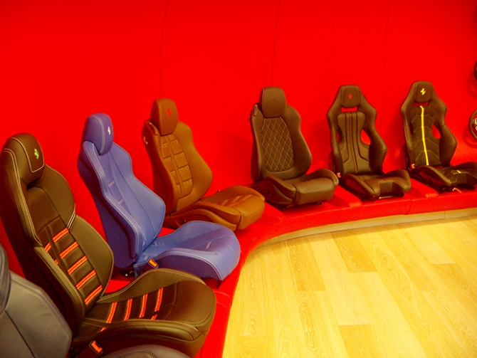 В отдельном корпусе находится подразделение Atelier, занимающееся персонализацией вашей будущей машины. В Ferrari есть три уровня кастомизации. Hа первом, самом простом, происходит обычная персонализация: вы можете выбрать, например, тип и цвет сидений и руля и, кстати, на них даже могут нанести ваше имя, – но, как говорят сотрудники, такую машину будет потом тяжелее продать. На втором, Tailor-Made, могут быть удовлетворены все запросы клиента относительно всех деталей снаружи и внутри, их цвета и материалов, и здесь есть 3 коллекции – Scuderia (спортивный стиль), Classica (тут все понятно) и Inedita (инновационный дизайн). Каждый клиент работает со стилистом, который все ему объясняет и разрабатывает концепт. И есть вещи, которые здесь не станут делать даже за те немалые деньги, которых стоит такая кастомизация: "Мы никогда не используем дикие сочетания цветов – например, розовый и зеленый". Самый яркий пример персональной машины – знаменитый Ferrari California Лаппо Элканна матового синего цвета с салоном из серой кожи и денима. Впрочем, на заводе подчеркивают, что это особая история, потому что Лаппо полностью разрабатывал дизайн сам. Однако все это не касается механики – тут нельзя изменить мощность двигателя или какие-либо другие инженерные параметры. Если же вы хотите переделать кузов – то это уже третий, самый высокий уровень кастомизации, One Off, и таких машин в мире считанные единицы.
