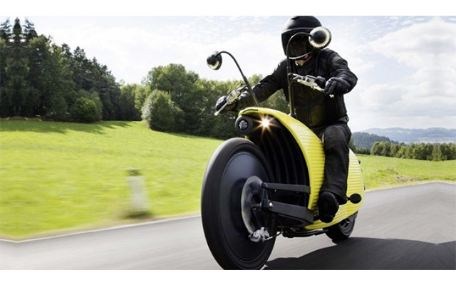 Забавный "жук" J1 является отличным примером сочетания изобретательности и чувства юмора дизайнеров. Мотоцикл на электроприводе от фирмы Johammer обладает встроенным в заднее колесо электродвигателем с потреблением энергии в 11 кВт/в час и мощностью 14 л.с., а также батареей, рассчитанной на 100 000 км до следующего ТО. Максимальная скорость электрического железного коня — 120 км/час, однако ехать "с ветерком" долго его владелец не сможет, ведь полного заряда батареи мотоциклу хватит всего на 150 км.