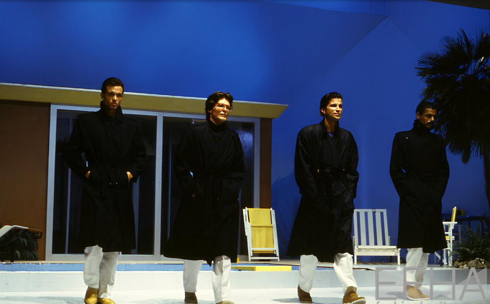 После Вествуд на Pitti Uomo состоялись показы Жан-Поля Готье, Федерико Дольче и Стефано Габбана (которые, кстати, объявили о запуске линии D&G в рамках выставки), а теперь во Флоренцию прибыл Дрис Ван Нотен. Дизайнер продемонстрировал одежду и аксессуары, будто вдохновленные фильмами Феллини, на впечатляющем фоне площади Микеланджело, рассадив гостей так, будто они пришли в ресторан.