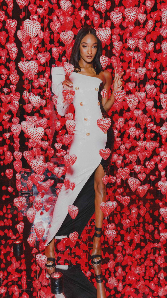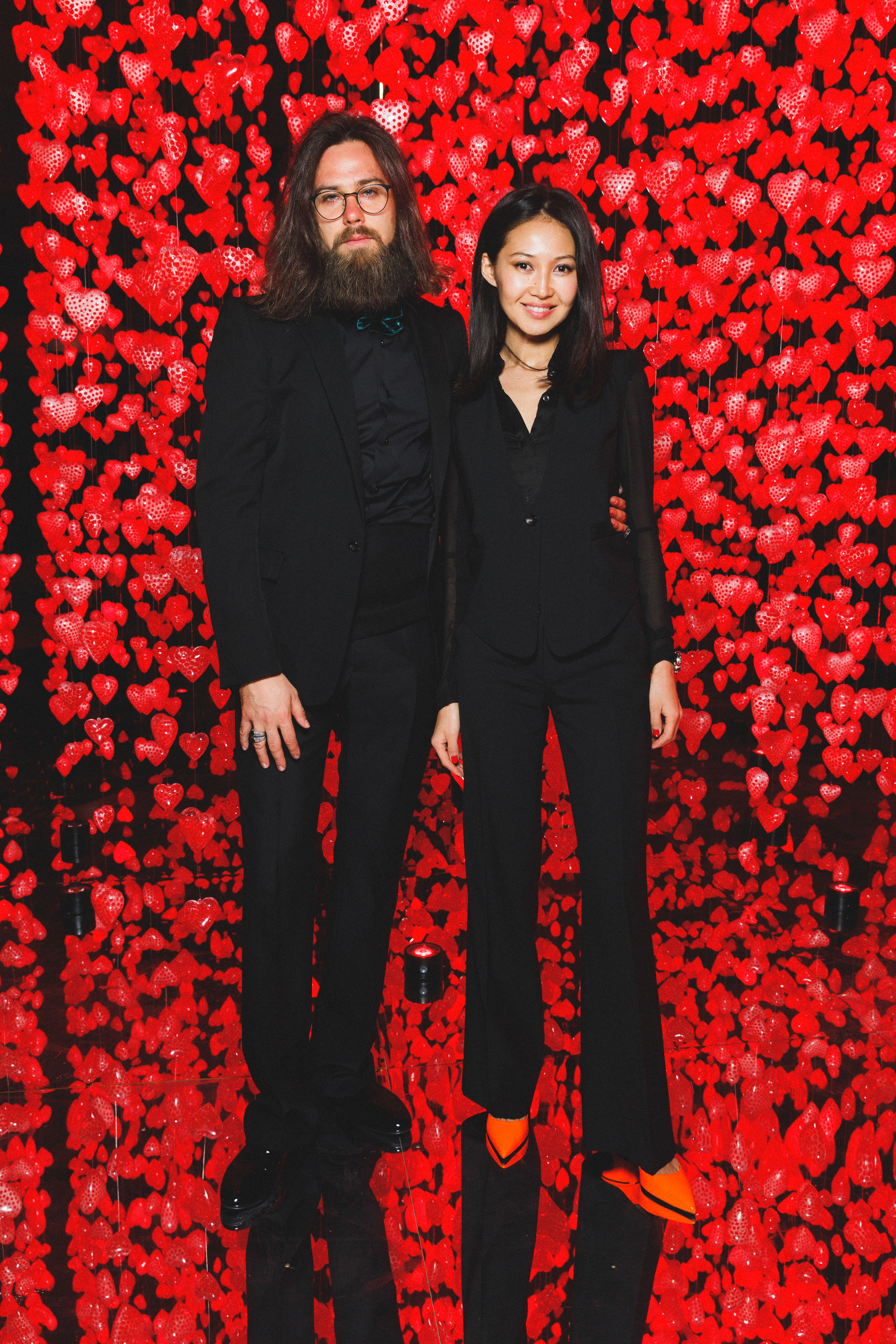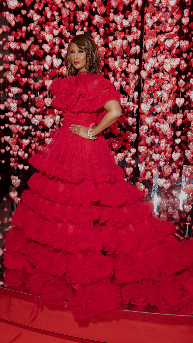 Импровизированным фотоколлом мероприятия стала инсталляция из четырёх тысяч красных сердец — символов благотворительного фонда «Обнажённые сердца», основанного Натальей Водяновой.