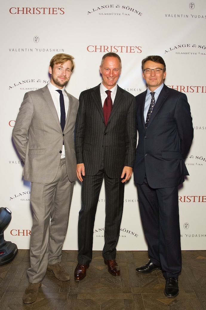 Гай Визи (директор Christie’s Россия), Вильхельм Шмидт (генеральный директор A.Lange & Söhne) и Пол Хьютт (Christie’s)