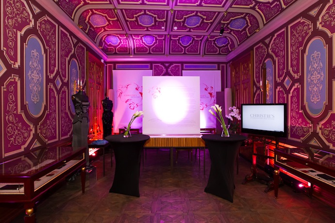 Шедевры мировой живописи, роскошные украшения и часы — все это в четверг вечером можно было увидеть на закрытом показе аукционного дома Christie's. К семи часам в особняк в Вознесенском переулке стали съезжаться коллекционеры и ценители искусства, бизнесмены и представители медиаиндустрии, которые, пройдя по красной ковровой дорожке ко входу, оказывались в прекрасных интерьерах Дома моды Валентина Юдашкина, где, собственно, и проходило 18-е по счету предаукционное мероприятие Christie's. Гости вечера наслаждались ризотто с трюфелем, пирожными макарун и другими изысканными закусками, разглядывая великолепные кольца, браслеты и колье с разноцветными бриллиантами, произведения высокого часового искусства Саксонии от марки A.Lange & Sohne и четыре живописные работы старых мастеров и русских художников, прежде не появлявшиеся в России.