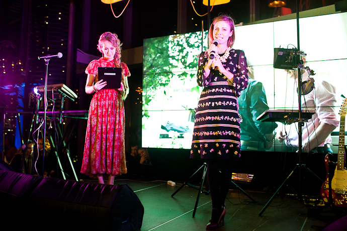 Начало вечера ознаменовало ее вступительное слово. Ссылаясь на преимущественно женскую аудиторию "Сплетника", Ксения Анатольевна сравнила сайт с девушкой, которая "созрела и похорошела" за прошедшие 5 лет. "Я помню, как Полина начинала этот проект, — поделилась с гостями Ксения Собчак. — Она сидела в маленьком офисе за компьютером в джинсах и уггах, было очевидно, что она без отрыва сидела за экраном несколько дней подряд". Вслед за этими словами на сцену поднялась автор сайта Spletnik.ru Полина Дерипаска, которая поблагодарила всех присутствующих за интерес к проекту, поддержку и комментарии.