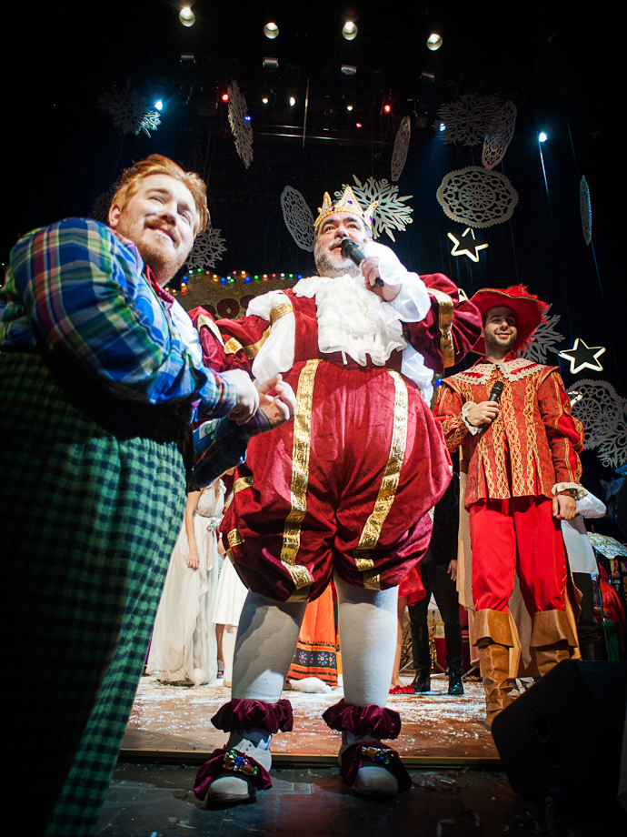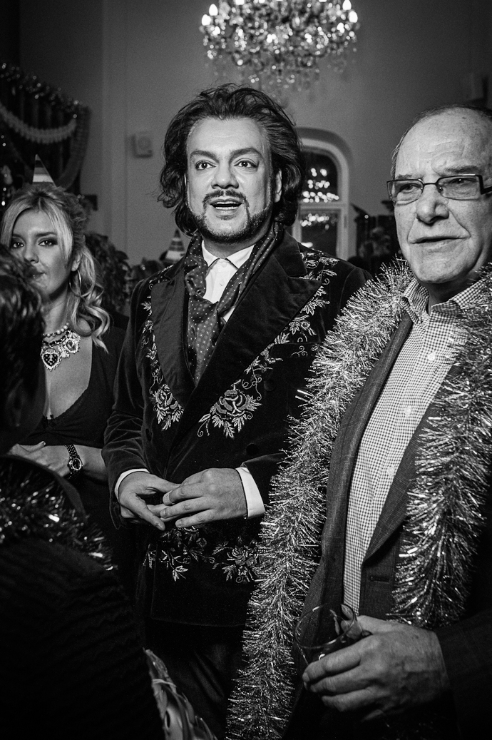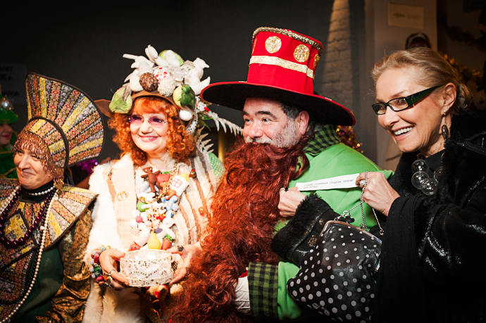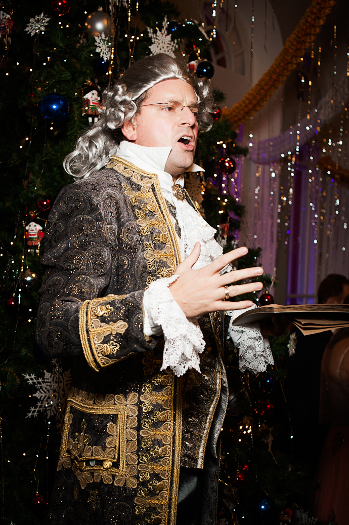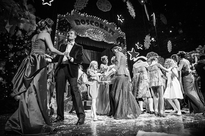 В одно из воскресений декабря компания Bosco по традиции собрала друзей на ежегодный Bosco-бал, c ног до головы нарядив Театр наций в новогодний костюм и устроив там шумный праздник. О карнавале под знаком Bosco становилось известно каждому, кто проходил в этот вечер по Петровскому переулку: к театру съезжались десятки гостей, которых ведущие встречали музыкой, горячими напитками и танцами. Пройдя в фойе, каждый приглашенный мог выбрать свое пожелание на Новый год, украсить себя мишурой, маской и колпаком и зарядиться хорошим настроением. Весь театр организаторы украсили к Новому году, в партере и бельэтаже установили столы, а на сцене возвели праздничные декорации, с пушистыми заснеженными деревьями, наподобие тех, что так часто зимой украшают вход в ГУМ. Пока гости собирались, у огромной елки, стоя на табуретке, Константин Андрикопулос читал стихи на французском, развернув огромный старинный свиток.
