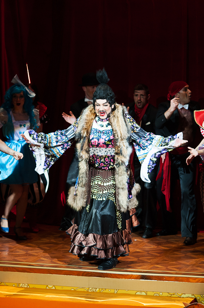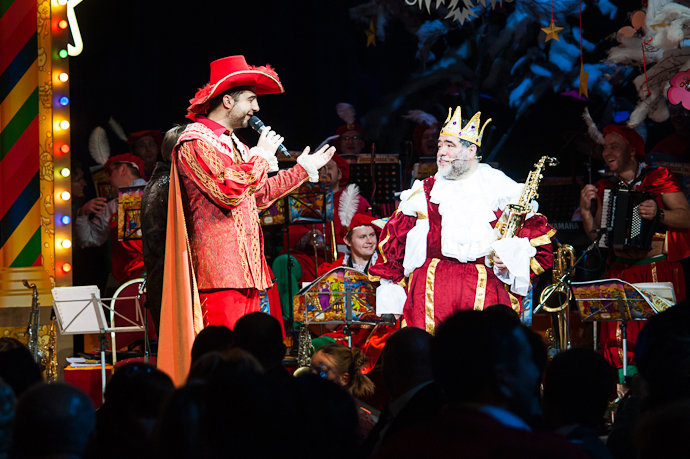 Затем все гости перешли в зал, уселись за длинные столы в ожидании основной части праздника, которая длилась больше четырех часов. Ведущим был Иван Ургант, который вместе с Михаилом Куснировичем и джаз-бандом Игоря Бутмана управлял кукольным театром Карабаса-Барабаса. Удивительные превращения происходили на сцене, где друг за другом появлялись Бременские музыканты, Разбойники, Принцесса и Король, черепаха Тортилла, Красная Шапочка и многие другие. Bosco-бал посетили все-все-все, и, как обычно, он прошел на ура: гости и в одиннадцать вечера не уставали танцевать, участвовать в конкурсах, слушать песни из любимых детских мультфильмов и веселиться.