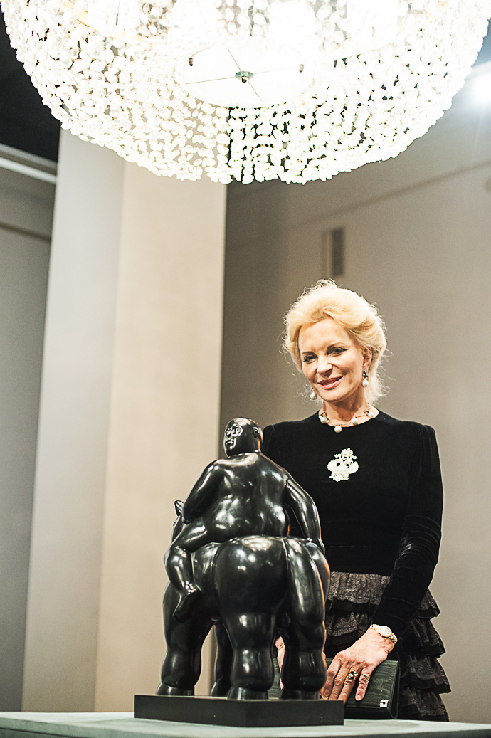 Вчера в Центре изящных искусств на Волхонке прошел закрытый ужин с принцессой Майкл Кентской в честь выставки скульптур Фернандо Ботеро. Ее королевское высочество приехала в Москву для того, чтобы лично представить работы знаменитого латиноамериканского художника рубежа XX-XXI веков, на выставке, которая проходит в рамках Российской ярмарки антиквариата и изобразительного искусства (RAFAF). Именно принцесса Майкл Кентская три года назад также перерезала ленточку на открытии Центра изящных искусств на Волхонке. Эксперт в области современного искусства, она рассказала собравшимся о личности Ботеро и ставшей его визитной карточкой гиперболизации на примере знаменитой бронзовой статуи Hombre a Caballo ("Мужчина на лошади"), уменьшенной копии монумента, выставленного на родине художника в Боготе, а также работы "Лежащая обнаженная".