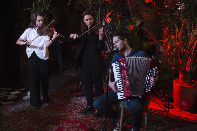 Вечер BURO.Art Night продолжился игрой Глеба Андрианова на фортепиано, выступлением молодой и талантливой скрипачки Ариадны, а также ироничной группы «Залпом». Кульминацией вечера стал перформанс от Данилы Полякова, а завершился BURO.Art Night под экзотический диджей-сет и вручением подарков гостям от LOEWE Perfumes.