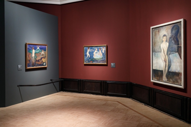 Две работы мастера для выставки предоставил ГМИИ им. А.С. Пушкина — «Девушки на мосту» и графический «Автопортрет с рукой скелета». Ключевым экспонатом стала прославившая Мунка картина «Крик».