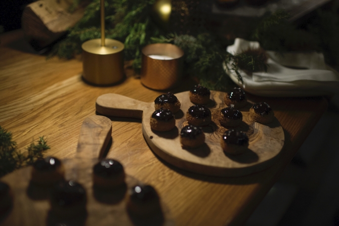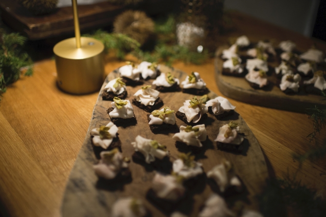 Сет был составлен так, что каждое из блюд было приготовлено одной из них. Хлеб испекла Оксана Кузнецова; Ариша Задунайская приготовила печеный баклажан, хумус из подсолнечника с чиабаттой; тартин с сыром, свеклой и водорослями подавала Наталья Березова; Ольга Суздалкина отвечала за безглютеновый крисп с тыквой, карри и темпе; лосось с морковью и маслом из сосновых шишек был на Олесе Дробот; томленую алтайскую утку преподнесла Юлия Литвиненко, а десерт — панна котту из сена, фейхоа и кокосового снега — сделала Валерия Сидорова.
