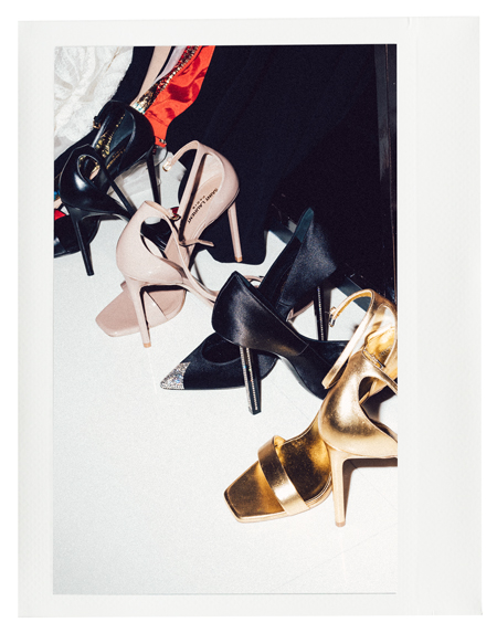 На каблуках или без? Каблуки на выход — must, особенно на красную дорожку, чтобы пройтись, как королева, и быть на высоте. Тут даже не надо экспериментировать и ничего выдумывать. Я нашла свои идеальные — туфли Saint Laurent c каблуком 10,5 см.