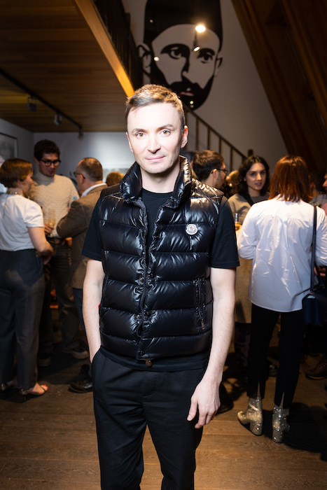 Основательницы галереи Artwin сестры Мадина и Мариана Гоговы пригласили близких друзей на коктейль по случаю приближающегося праздника. В рамках временной экспозиции в этот вечер были выставлены видеоарт Полины Канис «Яйца» по мотивам советской игры «Ну, погоди!», графика Владимира Чернышева, картина «Ворота-3» Мики Плутицкой из серии «Сказка» и абстрактные войлочные работы Гульнур Мукажановой