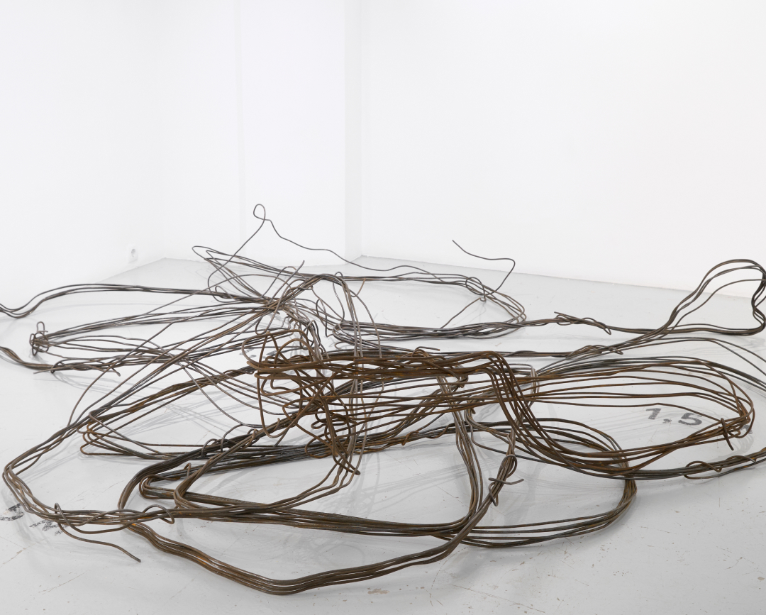 В Cube.Moscow заработала тотальная инсталляция Ани Желудь «Абзац» под кураторством Дмитрия Белкина. Проект посвящен теме утраченных связей и их материальных следов. В новых работах художница использует узнаваемую технику — гнутый металлический прут, с помощью которого она исследует формы и напряжения, возникающие в момент разрыва коммуникации.
