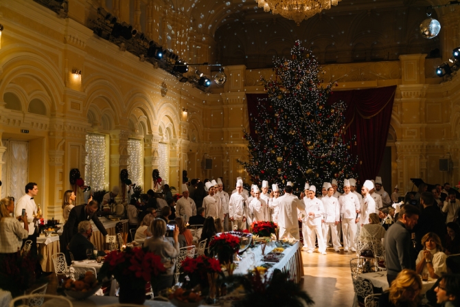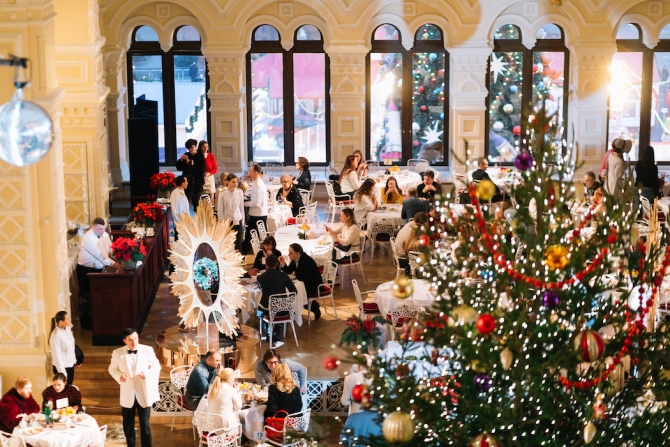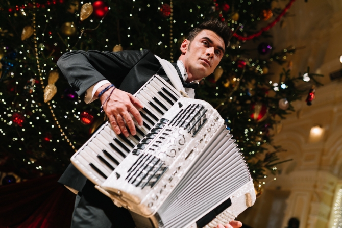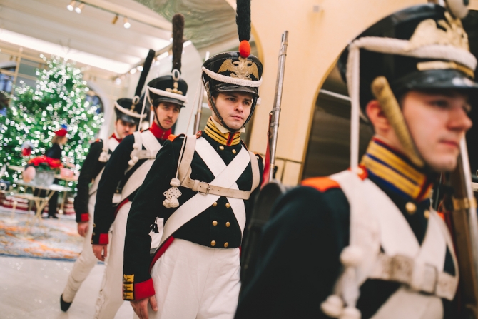 Под барабанную дробь оркестра гвардейцы русской императорской армии первой половины XIX века провожали на осмотр обновленного пространства магазина. Затем в Демонстрационном зале ГУМа состоялся предновогодний бранч под живую музыку в исполнении квартета Вадима Эйленкрига, оркестра «Виртуозы Москвы» под руководством Владимира Спивакова, аккордеониста Петра Дранга, а также мужского и детского хора.