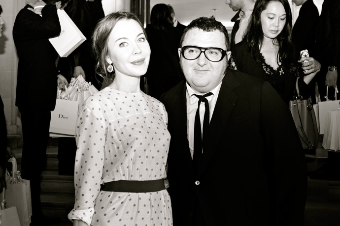 Помимо "обычного" набора из главных редакторов и актрис первого ранга, специальными гостями показа стали многие знаменитые дизайнеры: Рикардо Тиши, Диана фон Фюрстенберг, Марк Джейкобс, Оливье Тискенс и даже Пьер Карден и давно закрывший свой бизнес Жан-Луи Шеррер. Коронованных особ представляли монакская принцесса Шарлин и принцесса Бахрейна. Обаятельная Ульяна Сергеенко, сама дебютирующая сегодня в Париже с коллекцией haute couture, вызывала неподдельный интерес у присутствующих дизайнеров. К ней по очереди подходили и целовались Марк Джейкобс, Аззедин Алайя и Альбер Эльбаз, который на выходе даже подарил Ульяне одну из фиалок, вырванных из цветочной стены.