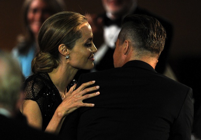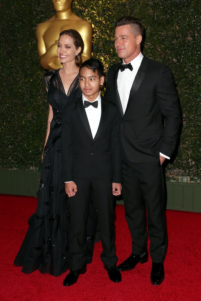 Компанию Анджелине Джоли, появившейся в платье Atelier Versace, на красной дорожке составил Брэд Питт в костюме Saint Laurent и их старший сын Мэддокс.