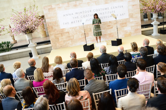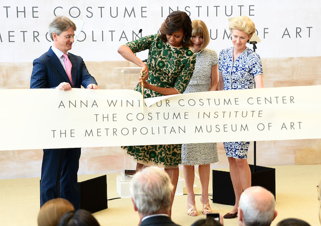 Право перерезать ленточку на утреннем торжественном открытии Anna Wintour Costume Center предоставилось первой леди США Мишель Обаме. Что не удивительно: супруга президента уже дважды появлялась на обложке американского Vogue и, с легкой руки главного редактора, получила статус the first lady of fashion.