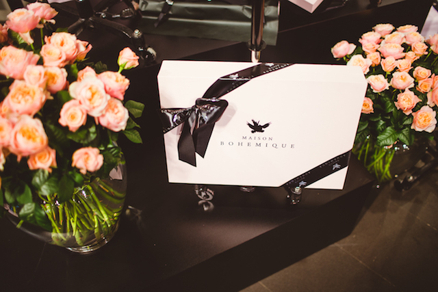 Для модной ночи до сих пор секретный Maison Bohemique представил небольшую коллекцию, посвященную их знаковой баске. Пять моделей широких оборок из неопрена, тафты, лака, декорированные ручной вышивкой и рок-н-ролльными цепями, радовали не только мужскую половину. Девушки торопились в примерочные, дабы успеть приобрести свой размер из ограниченной линейки. Самые счастливые выходили в зал с розовыми коробками, перевязанными черной атласной лентой, явно навеянными творчеством Agent Provocateur.
