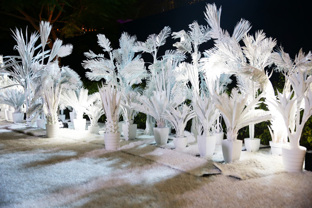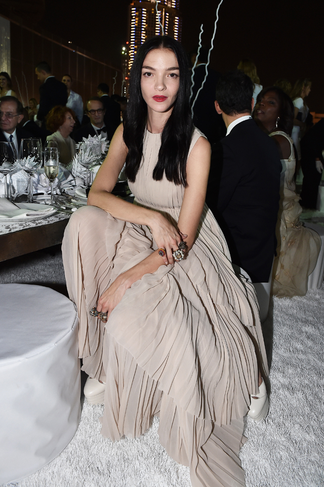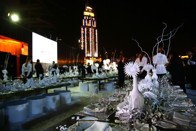 Сразу после лекций известных дизайнеров и журналистов в The Dubai Mall, гости переместились в Armani Hotel Dubai, пространство которого изменили до неузнаваемости: жаркую дубайскую ночь превратили в снежную сказку — казалось, все вокруг было усыпано пушистыми снежинками, даже растения были белоснежными. Соответствовали стилистике и гости гала-ужина, для которых был предусмотрен белый дресс-код.