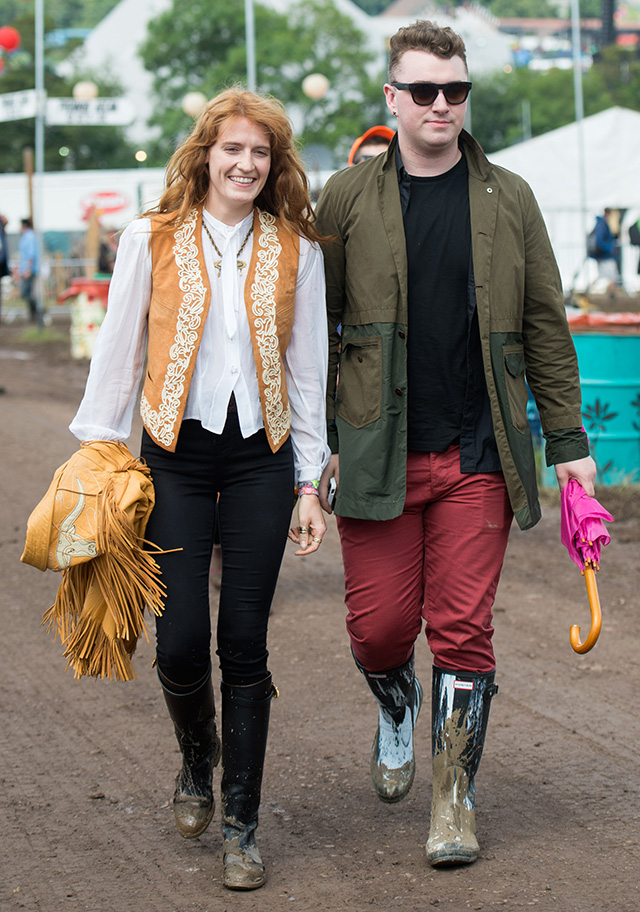 Glastonbury часто называют аналогом калифорнийской Coachella. Фестивали действительно ни в чем не уступают друг другу: громкие лайн-апы, десятки тысяч гостей, распроданные за несколько часов билеты на мероприятие, куча развлечений и сцен. Что по-настоящему объединило в этом году обе площадки — это плохие погодные условия. Если на американском континенте все пытались спастись от песчаной бури, то на Туманном Альбионе гости буквально утопали в грязи. Однако ни Алексе Чанг, ни Лили Аллен, ни Стелле МакКартни с ее мужем, никому другому это обстоятельство не портило настроения и не стало причиной отказа от поездки на самое громкое музыкальное событие Великобритании. Главным аксессуаром фестиваля оказались резиновые сапоги Hunter, которые были замечены на большинстве гостей, однако находились и те, кто закрывал глаза на неудобства ради внешнего вида, как, например, сестры Хайм из группы HAIM и Лили Аллен.