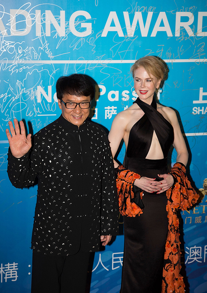 Церемонию награждения Huading Awards в китайском городе Макао, которая проводится несколько раз в год и чествует личностей из индустрии развлечений, посетили накануне одни из самых известных представителей мирового кинематографа. Самый большой отель-казино в Азии The Venetian Macao, идентичный одноименному комплексу в Лас-Вегасе, принимал в понедельник вечером на торжественном мероприятии голливудских актеров Джереми Айронса, Квентина Тарантино, Мэттью Перри и многих других. 46-летняя актриса Николь Кидман появилась на красной ковровой дорожке вместе с председателем церемонии Джеки Чаном, выбрав для вечера платье Prada с довольно смелым вырезом.