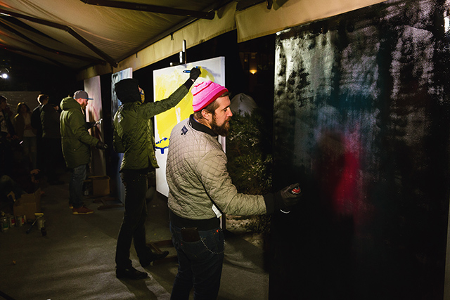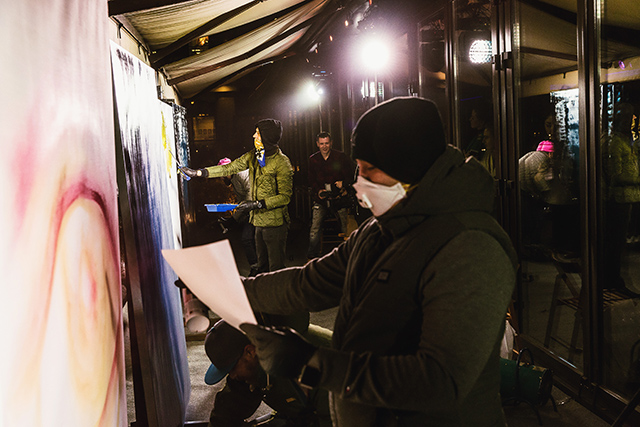 Одна из тем свежего номера Harper's Bazaar ART — уличное искусство в лучших его проявлениях: от работ звезд российского стрит-арта до «мрачного Диснейленда» Бэнкси. Четыре художника — Миша Most, Леша Медной, Илья Бодров и Дмитрий Mouk — представили на холстах свое видение обложки журнала. Их виртуозное владение баллончиками с краской оценили все собравшиеся: работа художников велась на протяжении часа. Параллельно гости наслаждались перформансом художницы Саши Фроловой и рисовали граффити вместе с главным редактором Дарьей Веледеевой.
