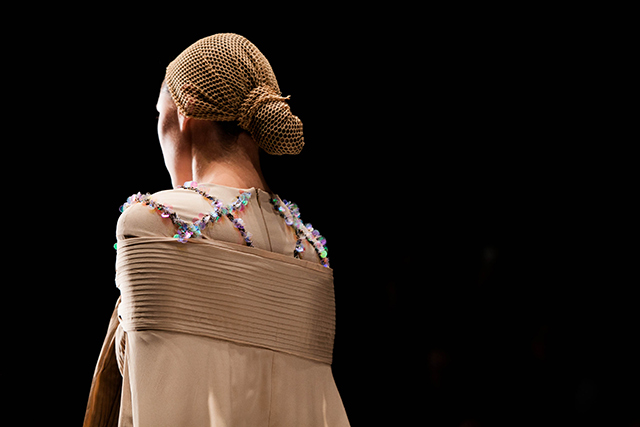 Основным источником идей для команды дизайнеров в работе над новой коллекцией стала Япония и элементы Азии. Также модный дом запустил лимитированную серию аксессуаров. Рюкзаки, напоминающие традиционный японский пояс оби, ювелирные украшения, выполненные из драгоценных металлов, солнечные очки и клатчи из экологичных материалов завершали каждый образ, представленный накануне в «Манеже».