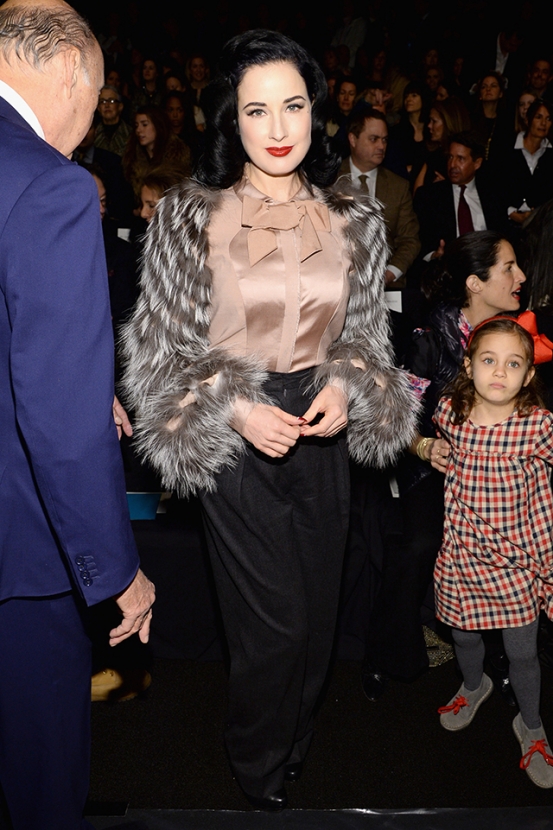 Рядом с Анной Винтур и Сьюзи Менкес в первом ряду кроме Тины Фей сидели другие актрисы, поклонницы Carolina Herrera: Эмми Россам, любовь "Призрака оперы", и Анна Кендрик из "Мне бы в небо". Пришла на показ и Дита фон Тиз, признанная миром моды королева бурлеска.