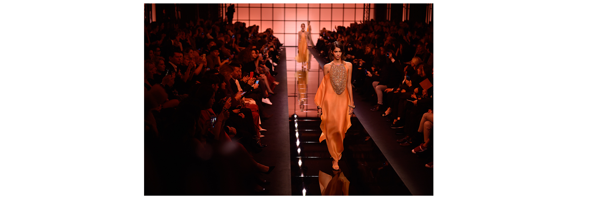 Для своей новой коллекции Джорджо Армани выбрал один главный цвет — оранжевый — с добавлением черного и бежевых оттенков. А ключевым мотивом для нового сезона стал Восток. Контрастные ткани были украшены богатой декоративной вышивкой, в качестве аксессуаров стилисты выбрали массивные украшения и широкие пояса.