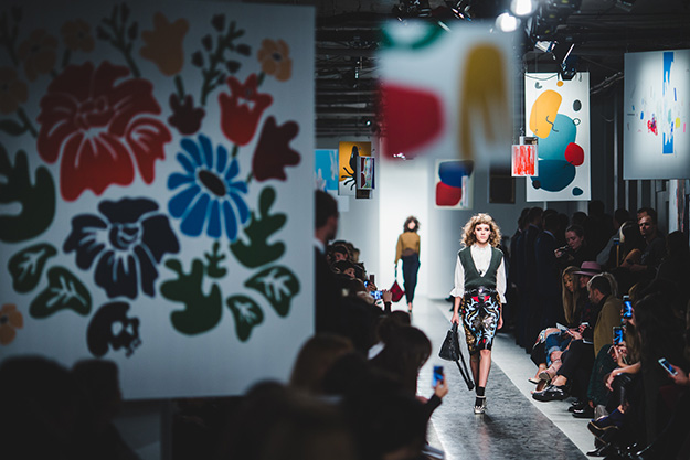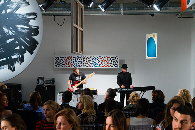 Специально к показу пространство на пятом этаже ЦУМа стало белым, а украсили его 65 картин в стиле абстракционизма, которые за неделю нарисовали десять художников. В лучших традициях мировых подиумов показ сопровождала живая музыка, написанная Игорем Вдовиным специально для шоу.