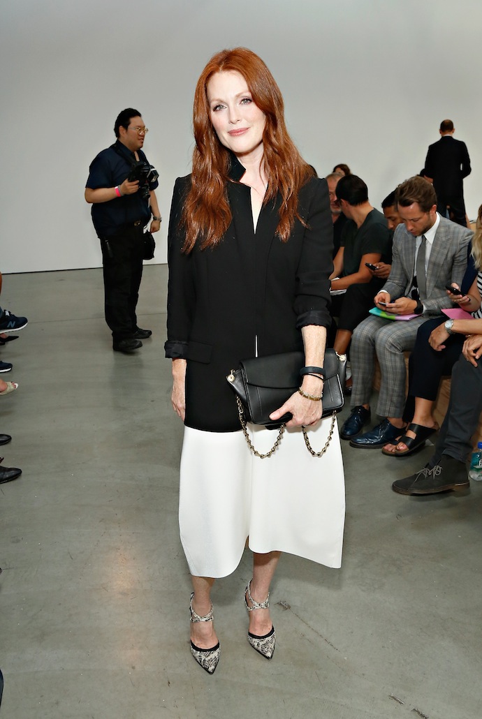 Не меньше звездных гостей собралось на показе Reed Krakoff. Актриса Джулианна Мур, переодевшись после посещения благотворительного дня букмекерской компании Cantor Fitzgerald, сразу направилась на модное шоу бренда. Увидеть коллекцию нового креативного директора Стюарта Виверса, сменившего на этом посту Рида Кракоффа, собрались Анна Винтур, Дерек Бласберг, Стивен Ган.
