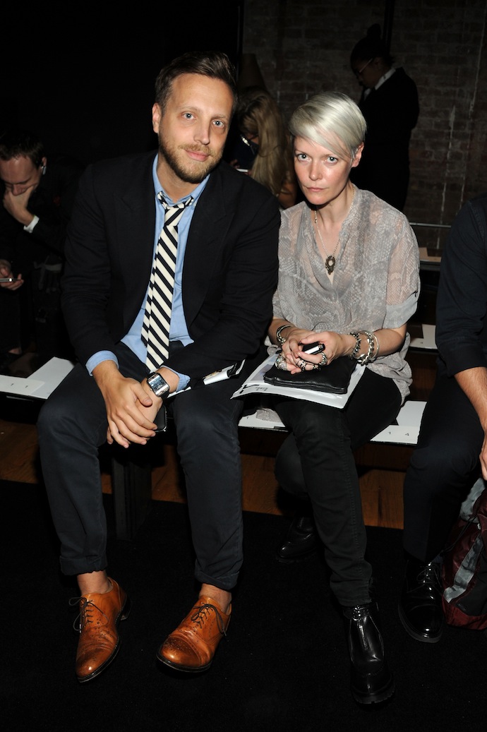 Актриса Джессика Стэм, главный редактор американского InStyle Ариэль Фоксман и директор моды T Magazine Кейт Ланфер были замечены в первом ряду на показе бренда Fallon.