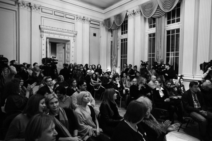 Buro 24/7 удалось побывать на представлении Романа Виктюка, которое проходило в готическом замке в центре столицы. Гости смогли увидеть репетицию сцены из "Маскарада Маркиза де Сада", а также театральный и поэтический перфомансы. Режиссер очень внимательно наблюдал за игрой актеров, сценой для которых в этот вечер стал холл здания, благодаря чему у гостей возникало ощущение "закулисья".