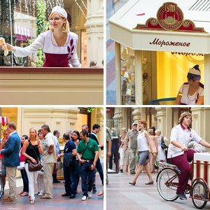Минувшим вечером на красной ковровой дорожке, простиравшейся от улицы Ильинки, нарядные барышни в приталенных пальто с меховой отделкой, узорчатых платках, меховых шапках и муфтах встречали гостей первой новогодней ГУМ-Ярмарки. Взяв за основу 1893 год (открытие Верхних Торговых Рядов), организаторы устроили праздник в лучших традициях народных гуляний конца 19 века.