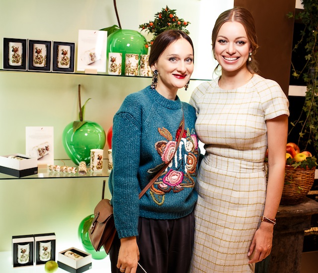 Несмотря на загруженность дорог и ненастную дождливую погоду, гости начали заблаговременно собираться в знаменитом еще в далекие советские времена месте. Уже на входе в здание ступени были усыпаны яблоками — символом A La Russe, а девушки в нарядах бренда и тиарах в волосах приветливо встречали гостей.