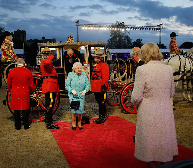 Гостей празднования ожидали не только выступления артистов, но и виртуозное конное шоу в исполнении профессиональных всадников, а также представителей королевского рода: дочери Елизаветы II принцессы Анны, принца Эдварда и леди Луизы Виндзор. Вместе с виновницей торжества за происходящим на арене наблюдали Кейт Миддлтон, принц Филипп, принц Чарльз и другие представители британской короны.