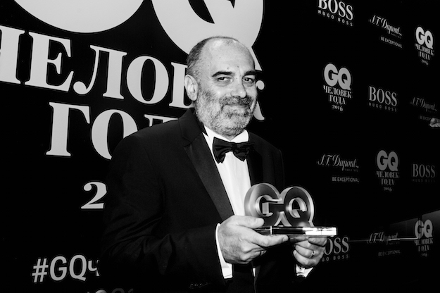 После короткого ролика с инфографикой журнала GQ за последние 15 лет Иван Ургант, ведущий вечера, приветствует собравшихся — церемония вручения премии торжественно началась. Чтобы вручить статуэтки, на сцену вышли Константин Богомолов и Дарья Мороз. Первую премию в номинации «Писатель года» получил Борис Минаев, очевидно, за историческую сагу «Мягкая ткань». В следующей номинации «Режиссер года» победил Кирилл Серебренников, чей фильм «Ученик» дебютировал в этом году в Каннах, Борис Зарьков забрал статуэтку в номинации «Ресторан года» за поднявшийся в мировом рейтинге ресторан White Rabbit, Андрею Беднякову же досталась специальная номинация «Позитив ведет дальше».