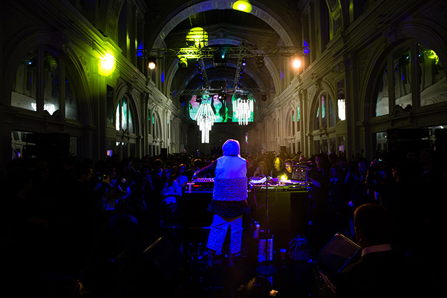 Пока одна часть гостей рассматривала телефон, другая перемещалась по двум залам. В первом находился диджей и бар, в другом — более тихая lounge-зона с большими окнами. Около 22:00 собравшихся ждал сюрприз — выступление бывшей солистки ирландской группы Moloko Рошин Мeрфи. Особенно горячо гости встретили песню Ancora Ancora Ancora.