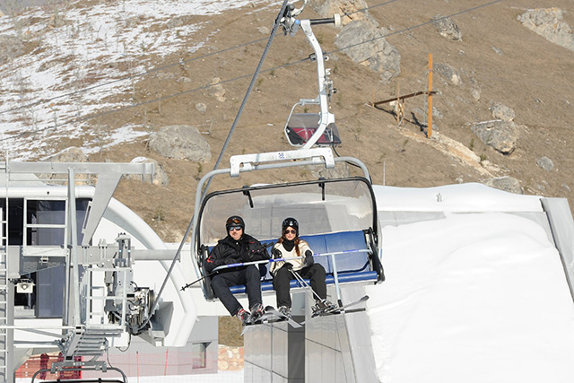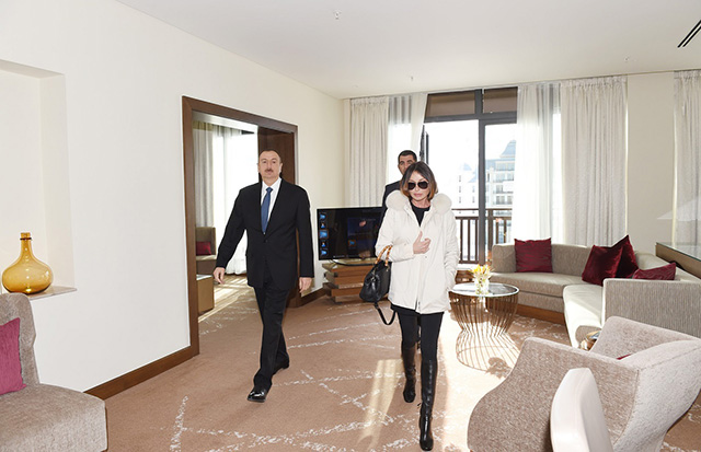 Президент Азербайджана Ильхам Алиев с супругой на открытии горнолыжного курорта