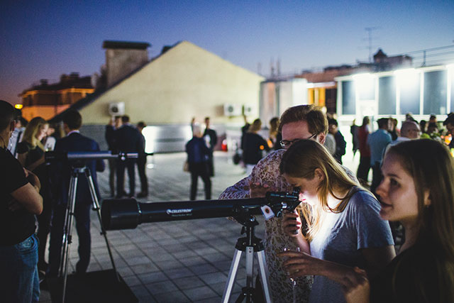 Гости вечера смогли первыми эксклюзивно увидеть выставку «Русский космос», после официальной части и приветственного слова Ольги Свибловой для гостей была организована экскурсия, во время которой можно было познакомиться с работами русских художников ХХ века, таких как Пепперштейн, Чтак, Новиков, Кабаков и многих других. В специальном, организованном компанией Omega Sky Lounge была представлена экспозиция легендарных хронографов, а за музыкальное сопровождение была ответственна команда модных диджеев Deep Fried Friends.