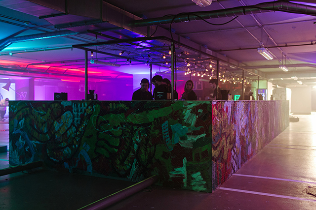 Андеграундная вечеринка на парковке с аудиовизуальным перформансом — кажется, иной формат в «Цветном» и представить невозможно. Минус четвертый этаж на один вечер превратился в экспериментальное пространство, где в полночь темноту вытеснили яркие цвета, дым и видеопроекции.