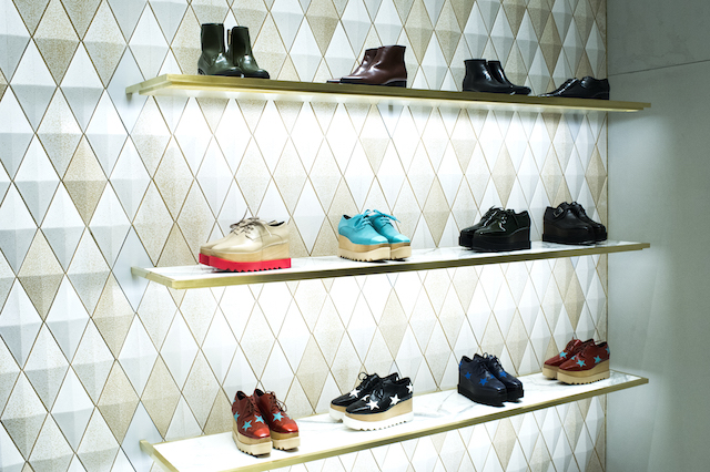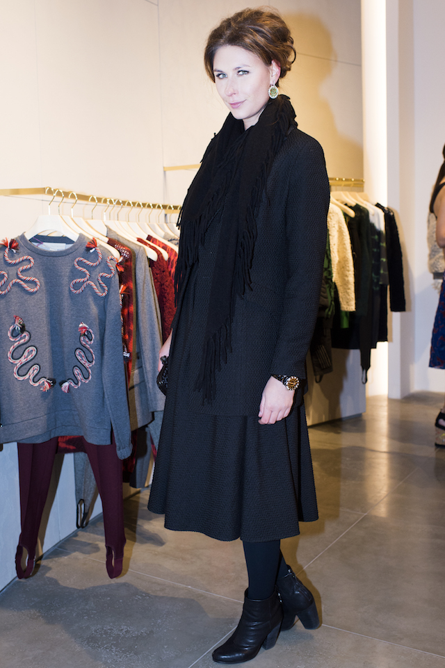 Началось все довольно рано, около шести вечера. Первые гости появились на пороге магазина по адресу Театральный проезд, 2. Встречала пришедших у дверей, как истинная хозяйка, лично Стелла. Внутри бутика царил настоящий дух Рождества. На импровизированных прилавках расположилось множество сладостей: карамельные трости, леденцы и капкейки. Рядом с ними игрушки родом из детства: легендарные конфеты Pez, спрятанные в фигурки снеговиков и Санта-Клаусов. Здесь же можно было найти светящиеся значки в виде пряничных человечков и других символов праздника, которые наполняли своим волшебным мерцанием бутик на протяжении всего вечера. К слову, дизайнер внимательно осмотрела каждый угол нового магазина и даже несколько раз выходила на улицу проверить, все ли хорошо с большими светящимися буквами Stella McCartney.