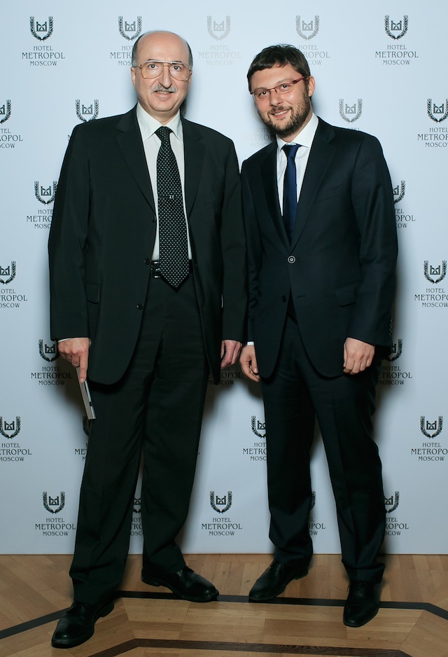 Минувшим вечером многие, осмотрев новый бутик Cartier на Петровке, направились в практически соседнее здание гостиницы "Метрополь". Там, под огромным стеклянным витражным куполом в главном зале отеля Эрик Булатов принимал поздравления по случаю своего 80-летия.