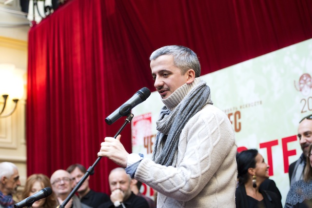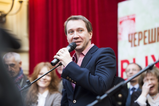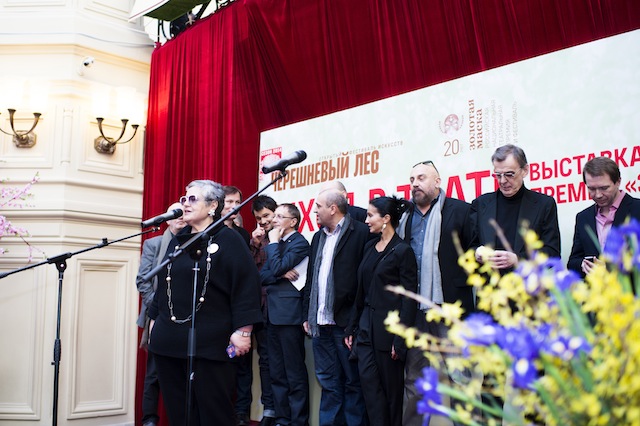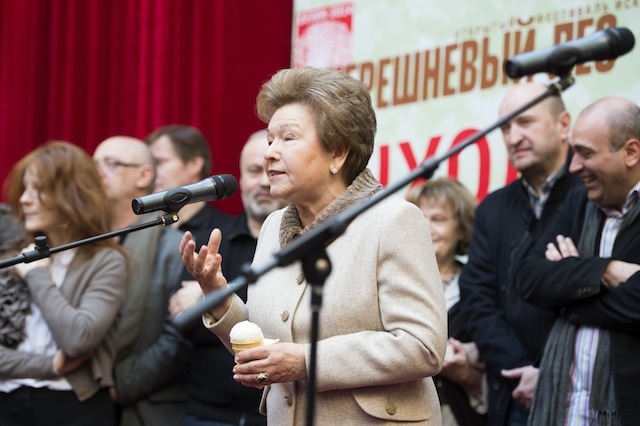 Руководители фестиваля "Черешневый лес" Михаил и Эдит Куснирович, президент премии и фестиваля "Золотая маска" Георгий Тараторкин, режиссер Константин Богомолов, а также актеры Евгений Миронов, Ксения Раппопорт и Данила Козловский отметили открытие выставки "Выход в театр", а вместе с ним и 20-летие национальной театральной премии "Золотая маска", которая будет вручена в Большом театре уже через неделю.