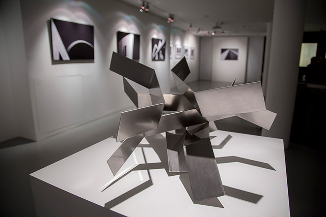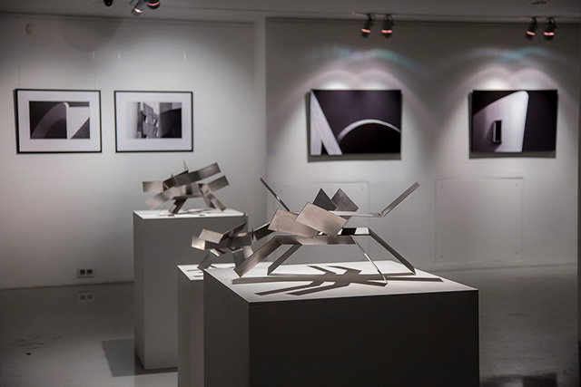 Творчество обоих авторов так или иначе связано с абстракцией, но исполнено по-разному: Мурелли мыслит инсталляционно, а Розанов — фотографически. В представленной на выставке серии черно-белых фотографий Михаил Розанов через геометрию, свет и тень создал ту самую новую реальность, новые построения, разрушив привычную форму и устоявшиеся правила. Риккардо Мурелли, напротив, создавая инсталляции site specific, лайтбоксы и офорты, опирался на почти научные законы, использовал взаимосвязь линий.