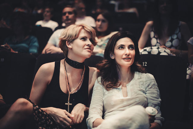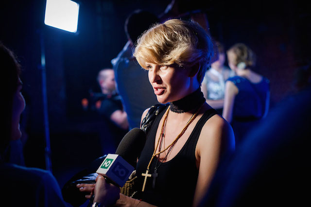 С самого утра в Центре документального кино были отменены все сеансы, а на площадке полным ходом шел монтаж декораций к вечерней премьере. Привычная дизайнерская обстановка внутреннего пространства изменилась до неузнаваемости, и только просветы кирпичных сводов напоминали ставшие для многих родными подмостки Провиантских складов. Футуристические кресла перенеслись в будущую зону медиатеки документального кино (к слову, ее открытие уже совсем скоро), а на их месте вырос значительных размеров пресс-волл с образцовой красной дорожкой.