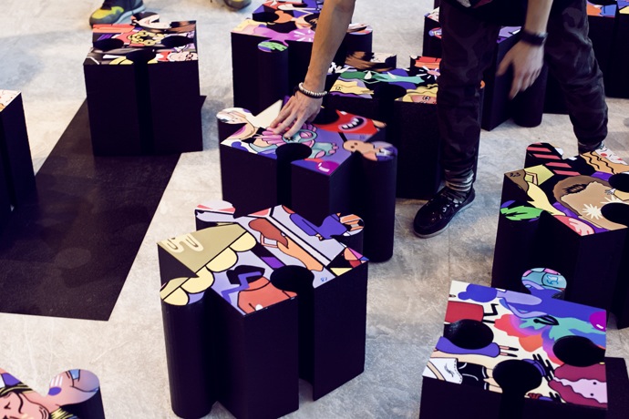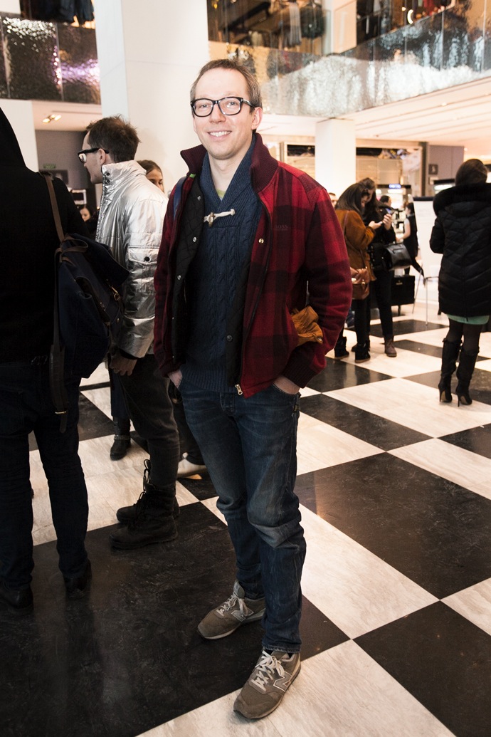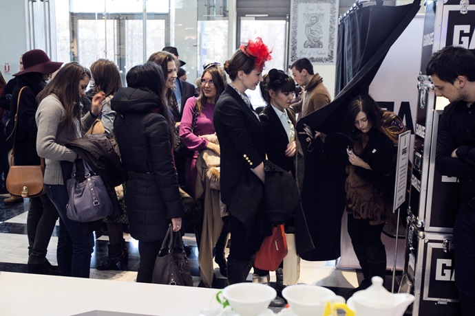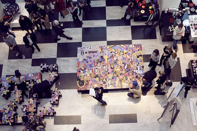 Очередь из желающих сфотографироваться на "обложку" Garage в специальной фотобудке не иссякала весь вечер, с шести и до девяти. Гости примеряли забавные очки, шляпки, маски и, наряжаясь, следовали лучшим традициям художницы Синди Шерман — мастерицы по части автопортретов в ярких костюмах. Другие посетители в атриуме "Цветного" собирали на скорость гигантский паззл с изображением главных модных деятелей современности.