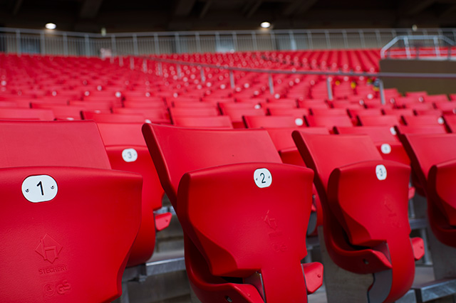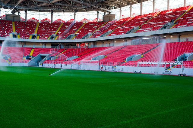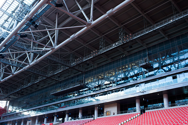 За неделю до сдачи "Открытия арены" (название на шесть лет приобретено одноименным банком, который, помимо прочего, обеспечил площадке максимальную технологичность и разработал специальную карту для болельщиков), мы прошлись по шести этажам стадиона вместе с главным инженером. Готовность объекта к этому моменту была... боевой. Работа над основной частью — полем и трибунами — полностью завершена. Удалось также оценить готовые домашнюю и гостевую раздевалки, соединенные между собой "пробником" футбольного поля: на небольшом крытом участке, застеленном искусственным газоном, игроки смогут проводить разминку. Оказалось, что это не самый оригинальный вид помещения, под которое инженеры и архитекторы оставили место: при желании будет оборудована комната для молитв (пока, очевидно, такой просьбы от "Спартака" не поступило — хороший знак). На верхних этажах внутреннего помещения работа шла полным ходом. Впрочем, инженеры не сомневаются, что к первой игре "Открытие арена" будет готова на 100%: "Люди работают 24 часа в сутки 7 дней в неделю".