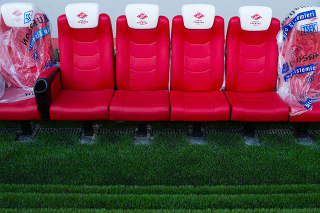 Учитывая, что стадион станет домашним для "Спартака", не приходится лишний раз говорить об основной цветовой гамме, выбранной при строительстве и отделке. Красно-белые здесь не только чешуйчатый фасад, трибуны и раздевалка хозяев, но и душевые, а также зал для пресс-конференций. Помимо цветового решения на принадлежность к "Спартаку" указывают и архивные фотографии легендарных игроков команды: здесь они не просто развешаны на доске почета, а представляют собой часть интерьера.